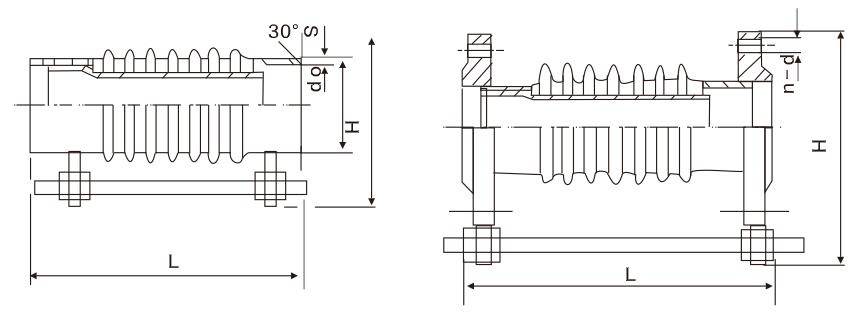 膨脹節(jié)由一個波紋管和兩個接管構成,它通過波紋管的柔性變形來吸收軸向位移(也有少量的橫向、角向位移),有接管聯接和法蘭聯接兩種形式。膨脹節(jié)上的小拉桿主要是運輸過程中的剛性支撐或作為產品預變形時調節(jié)尺寸用,不是承力件。該類膨脹節(jié)不能約束管道的壓力推力,壓力推力有兩側主固定管架承受。